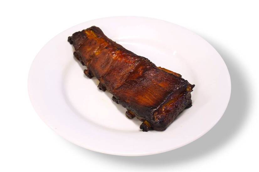 Соковите свиняче ребро, замариноване у фірмовому соусі BBQ та запечене до золотистої скоринки. М’ясо ніжне, легко відділяється від кістки та має насичений копчено-солодкуватий смак із пряними нотками.