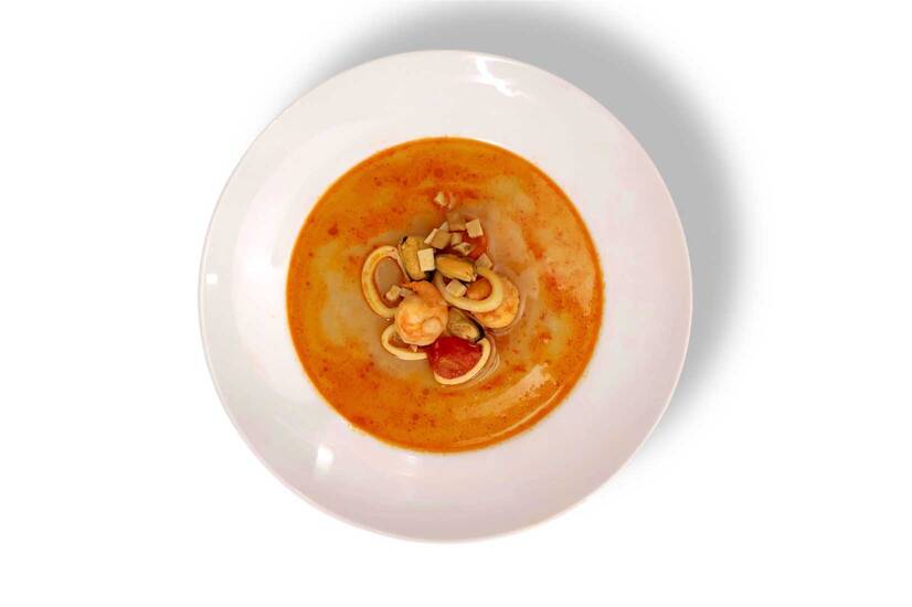 Ароматний суп з насиченим смаком та гостротою, що поєднує кокосові вершки, морепродукти та традиційні азіатські спеції. Продукт підданий шоковій заморозці для збереження смакових якостей та корисних властивостей.
